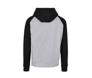 Build Your Brand BYB005 - Heather Grey/ Black - Classic Raglan Hoodie with Contrast Design