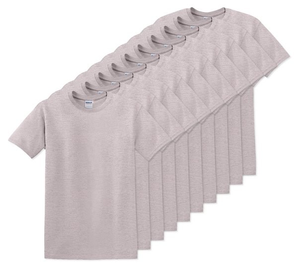 Pack of 10 Gildan 5000 - Ash - Premium Heavy Cotton Classic Fit T-Shirt for Adults