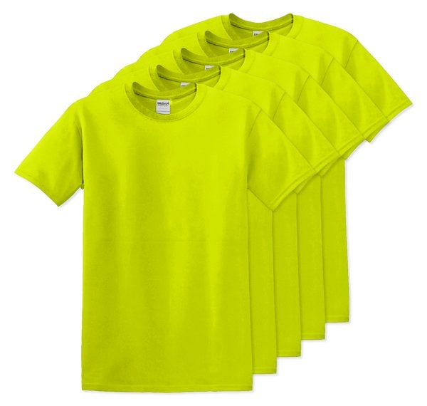 Pack of 5 Gildan 5000 - Safety Green - Premium Heavy Cotton Classic Fit T-Shirt for Adults