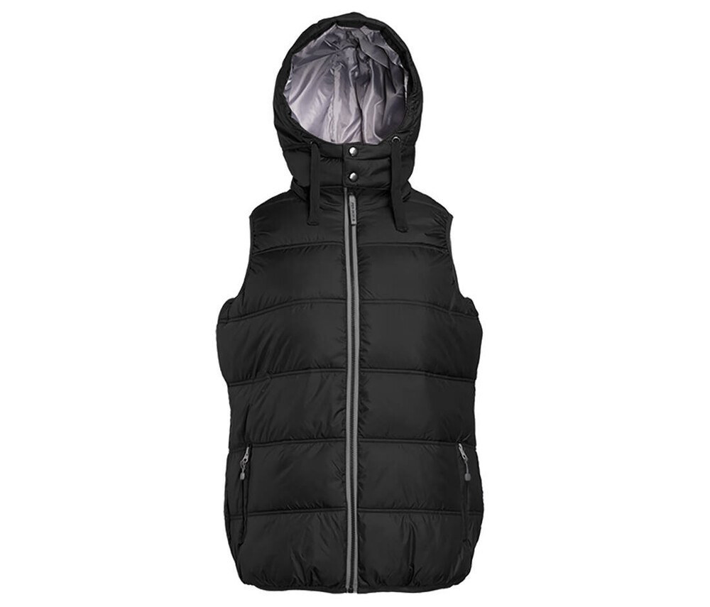 100% polyester. Quilted ladies’ bodywarmer. Contrast zipper with Pen Duick pull logo. Lining and Éclair® closure contrast pockets. Detachable and adjustable by flat cord hood. Water repellent and windproof. 2 inner pockets, one zipped. Slim fit. SBS zip. Logo, reference, size and name marked by transfer in collar.